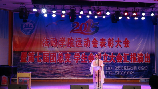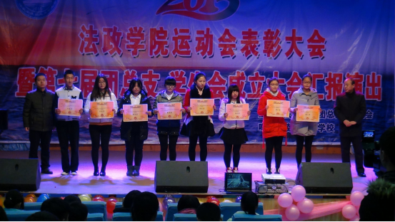 首先,我们进行了运动会表彰。一段精彩的视频带大家重温了运动会。接着刘占卿老师,张艳青老师为优秀运动员颁奖。梁文杰同学发表了获奖感言。接下来进入大会第二项:团总支学生会成立。首先,第六届学生会主席张阳同学进行了述职,然后,三位老师为新一届学生会干部颁发了聘书,其中,刘占卿老师强调:法政是个大家庭,要把法政精神牢记于心,修德行,担道义,敢于拼搏,勇于担当,争做最棒的系!最后,文艺汇报演出拉开帷幕。动听的歌曲、笑料十足的话剧小品、相声,还有萨克斯表演、国粹京剧、舞蹈、诗朗诵等丰富多彩的文艺节目惊艳全场,为大会增添了亮色。