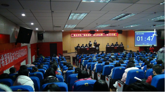 辩论是智慧与力度的展现,辩论是儒雅与思想的融合。2015年12月1日由衡水学院校学生会主办、各学院学生会承办的衡水学院“新希望杯”新生辩论赛季军争夺赛在图书馆报告厅隆重举行。此次比赛特邀校团委老师和各学院学生会主席担任评委。