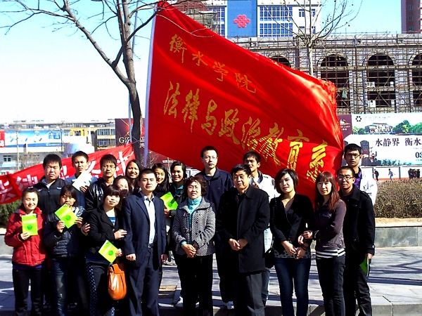 | 2011年3月15号法律服务社代表我系配合衡水市工商局、消费者协会在休闲广场展开一年一度的315普法咨询宣讲活动。