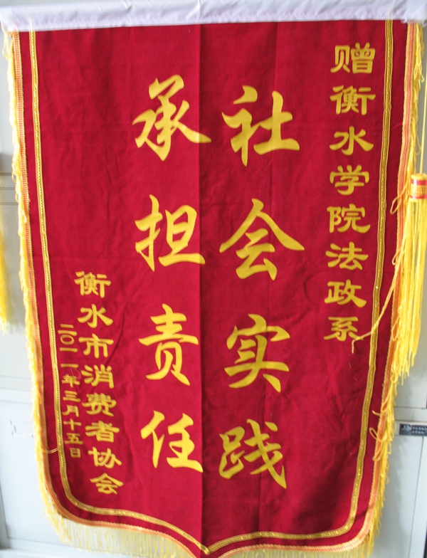 活动结束后,市领导与我志愿者合影留念,并赠予印有“社会实践,承担责任”的锦旗,表示愿意与我方达成长久的公益普法合作关系,此次活动,不仅提高学生的社会实践能力,并充分体现新一代大学生勇于承担社会责任,得到市民的和领导的好评。