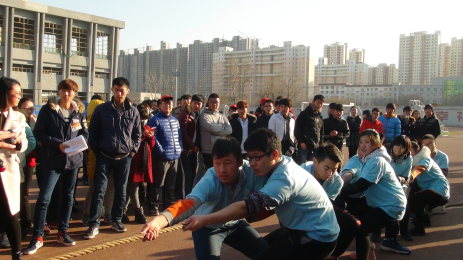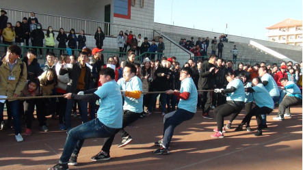 2015年12月17日下午两点,由校体育部举办的拔河比赛在操场举行。本次大赛采取抽签分组形式。我系则由刘全龙、李帅、孙泽良、汪巾铭、吴艳阔、曹淑芳、万明慧、王春阳组成一队,由高明、孙东旭、王哲、郝进宇、陈小顺、左欢、彭佳荣、于跃组成二队代表我系参赛,初赛两队分别对决数计学院、外语学院。