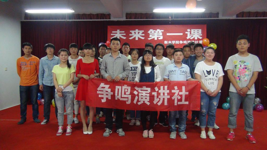 “少年智则国智,少年强则国强,孩子是祖国的花朵,未来的希望”,为了响应国家人才培养计划,引导小学生树立远大目标,培养他们拼搏进取的精神,衡水学院争鸣演讲社在2014年5月7日特赴衡水市桃城区珍宝街小学举办了以“未来第一课”为主题的演讲活动,珍宝街小学的领导、老师及六年级全体同学参加了活动,本次活动受到了衡水电视台和工业新区电视台的高度关注。